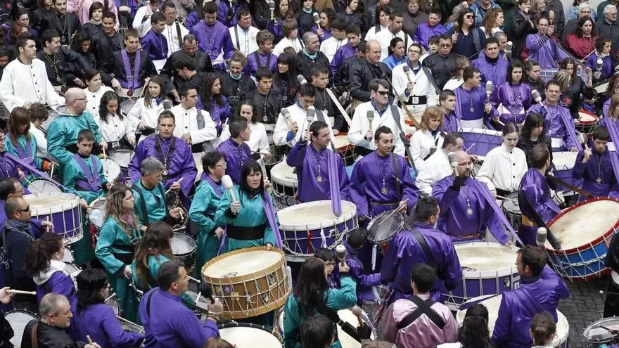 Miles de tambores y bombos con sus redobles recrean cada Viernes Santo los temblores que sufrió la tierra cuando Cristo murió, y todos al unísono, partiendo de la plaza España recorren el casco antiguo por sus singulares calles, plazas y portales hasta llegar a la Iglesia.