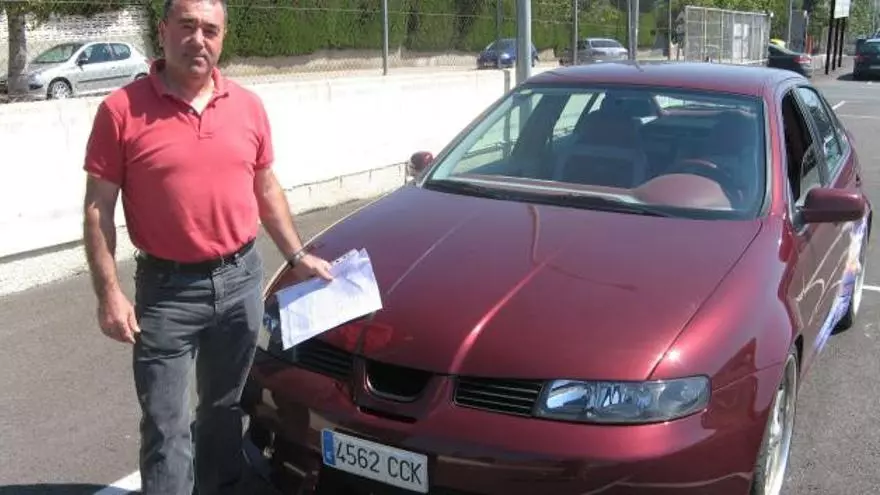 Manuel Cobo, con el vehículo objeto de la multa y las reclamaciones en la mano . / Laura Sena
