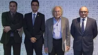Millet, delegado de Emprendimiento de la UPV, el rector Mora, Punset y Giner, director de la cátedra Bayer.