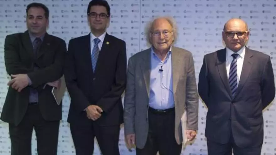 Los «rankings» internacionales sitúan a la Universitat Politècnica de València (UPV), con su Escuela Técnica Superior de Ingeniería Agronómica y del Medio Natural, como una de las 75 mejores del mundo en los estudios de Agricultura. Por tanto no podía encontrar mejor auditorio el celebre divulgador científico Eduard Punset (Barcelona, 1936) para hablar sobre los retos de la agricultura actual. Más de 3oo personas llenaron ayer el Paraninfo de la UPV para escuchar en persona al televisivo Punset en un acto organizado por la cátedra de empresa de la multinacional Bayer en la Politècnica.