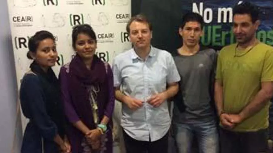 El coordinador de CEAR, Jaume Durà, junto a varios refugiados. / Levante-EMV