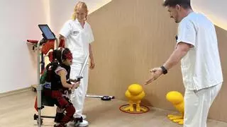 Safa sonríe mientras un par de sanitarios del hospital Doctor Peset le lanzan una pelota; también mientras entabla una serie de combate con espadas de juguete. Se encuentra cómoda, relajada y contenta, pese a toda la expectación a su alrededor. El culpable de ello es uno de los dos exoesqueletos adquiridos por la sanidad pública valenciana para mejorar la movilidad de los menores con enfermedades raras neurodegenerativas, como la parálisis cerebral o la atrofia muscular espinal. Más de 80 menores de entre 3 y 14 años, según los datos ofrecidos por la Conselleria de Sanidad, podrán beneficiarse de este prototipo innovador, diseñado por Elena García del Consejo Superior de Investigaciones Científicas (CSIC) y CEO de Marsi bionics, en hasta dos sesiones semanales tanto en el Peset como La Fe de València, los dos centros que ya cuentan con esta terapia tecnológica.