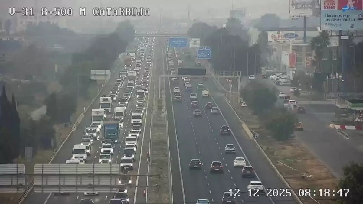 Un alcance dificulta la entrada a València por la V-31 en el entorno de Sedaví, debido al corte del carril derecho, y a las 8 de la mañana la retención alcanza los ocho kilómetros.
