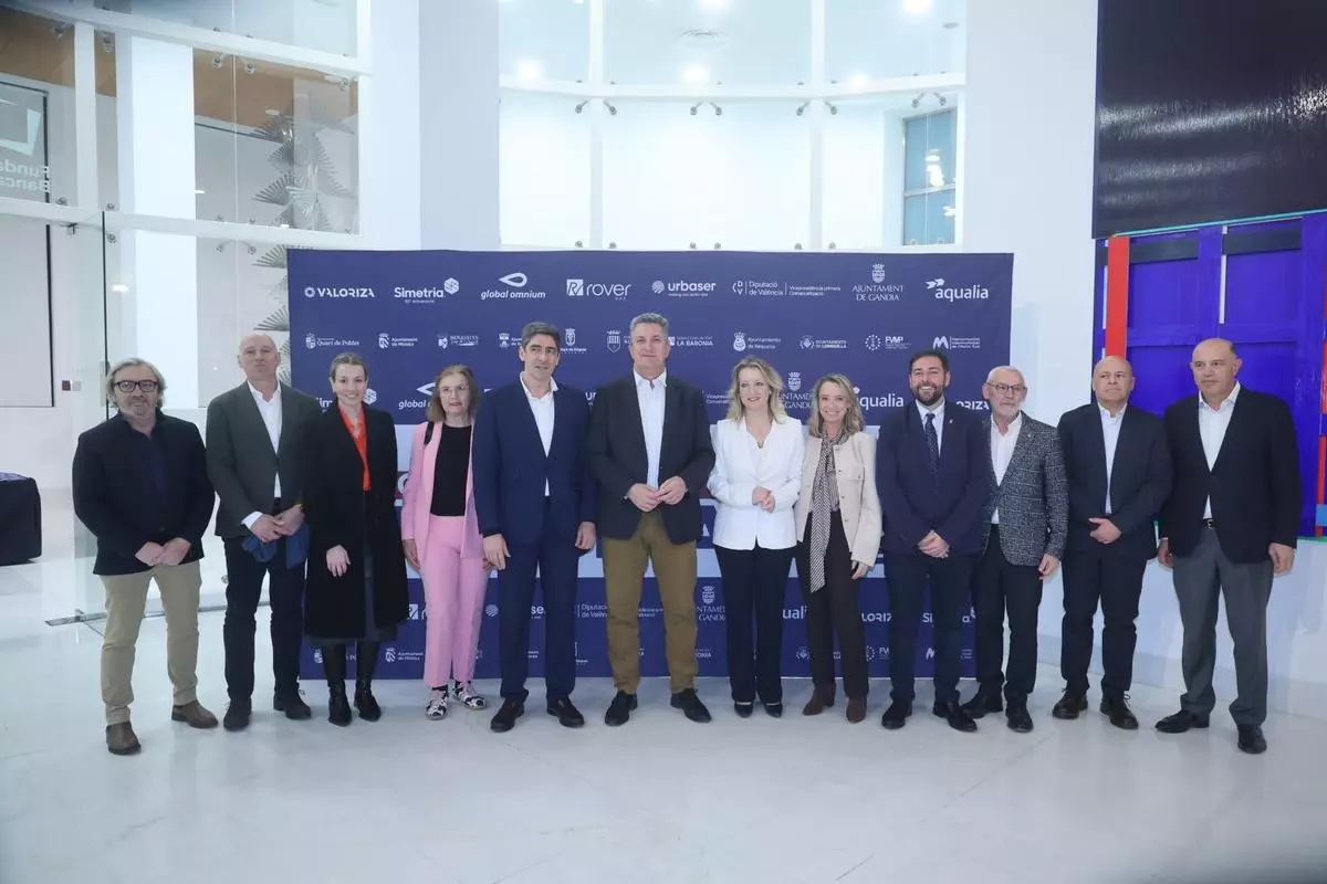 Francisco Javier Sendra, secretario autonómico de Infraestructuras y Transportes; Carlos Muñoz, director general de Simetría; Silvia Tomás, directora de Relaciones Institucionales de Prensa Ibérica en Valencia; Teresa Civera, alcaldesa de Bugarra; Andrés Sánchez, director general de Prensa Ibérica en la Comunitat Valenciana, Murcia y Andalucía; Vicente Martínez Mus, vicepresidente tercero del Consell para la Recuperación y conseller de Medio Ambiente e Infraestructuras; Paqui Bartual, alcaldesa de Xirivella y presidenta de la FVMP; Paz Carceller, alcaldesa de Puçol; Fran López, alcalde de Rafelbunyol y presidente de la Mancomunitat de l'Horta Nord; Miguel Chavarría, alcalde de Alboraia; Joan-Carles Martí, director de Levante-EMV; y Alfredo Rodríguez, presidente de Grupo Rover. / F. Bustamante