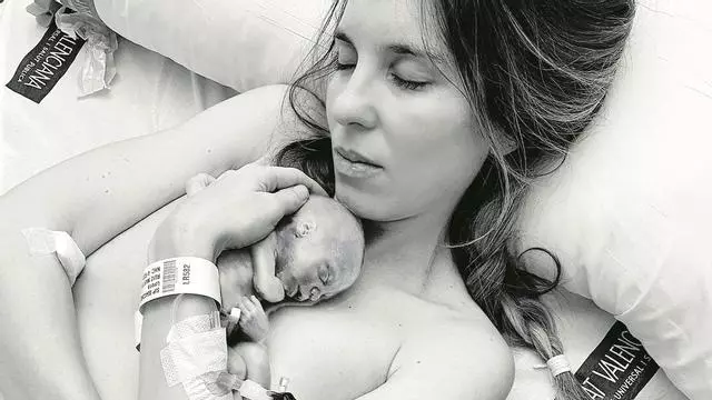 Lorena Ruiz, en una fotografía con su bebé que murió nada más nacer, realizada por su marido y difundida por ella misma para concienciar sobre esta realidad silenciada. / José Rodríguez