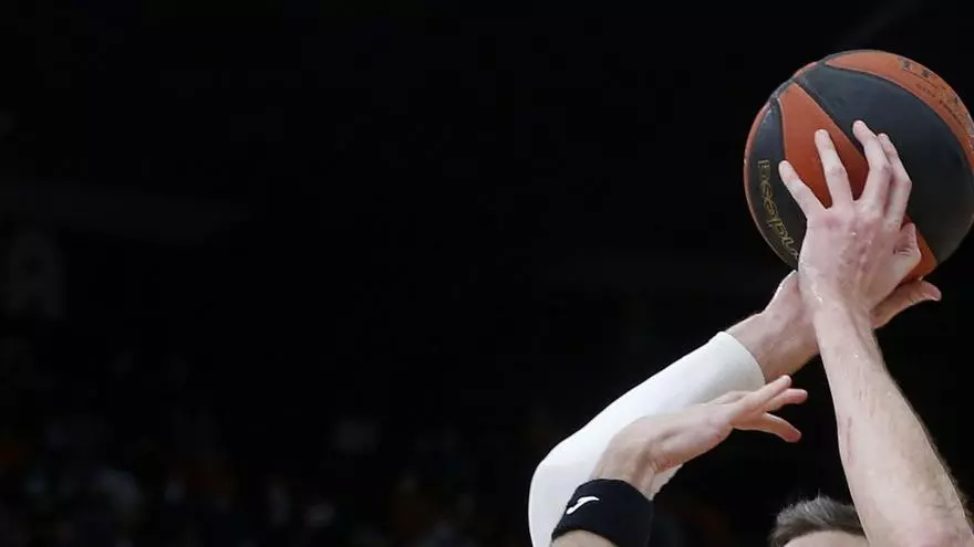Víctor Claver intenta lanzar a canasta durante el partido de ayer en La Fonteta. | EFE/MIGUEL ÁNGEL POLO / jorge valero. valència