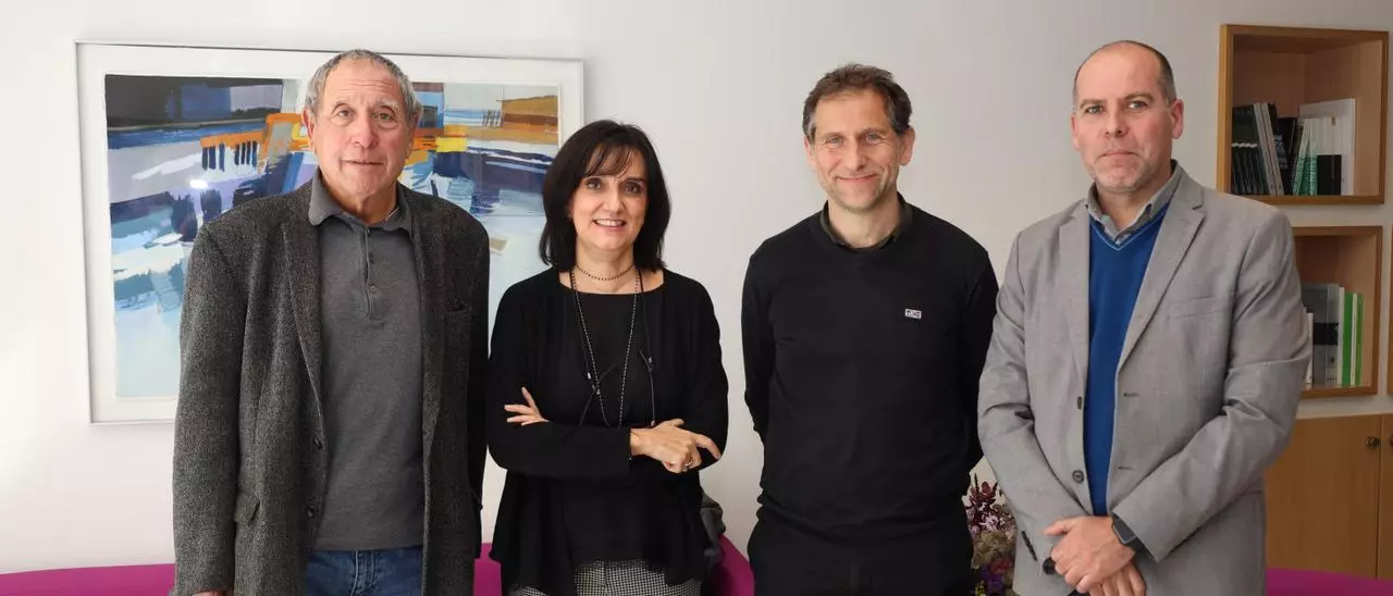 Los representantes de los arquitectos y aparejadores tras sellar el acuerdo conjunto,