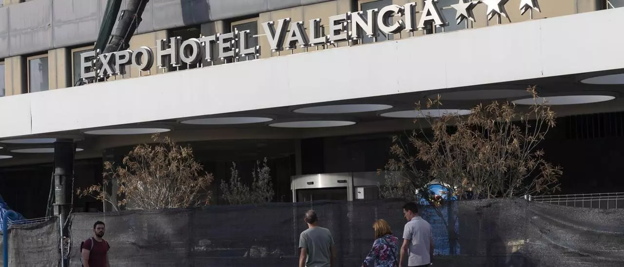 Acceso principal del antiguo Expo Hotel, que está en obras. / Levante-EMV