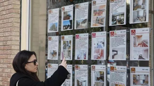 Una joven hace una foto a pisos en una imboliaria, en una imagen de archivo. / German Caballero