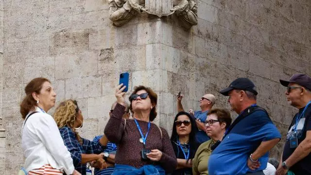 Un grupo de turistas en el centro de la ciudad de València, este año. / Francisco Calabuig