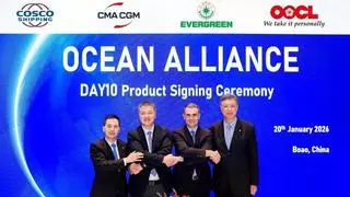 La estrategia de Ocean Alliance (CMA CGM, Cosco, Evergreen y OOCL) para 2026 ratifica la apuesta de estas compañías por el Mediterráneo y el sudeste asiático