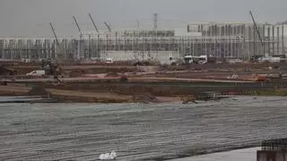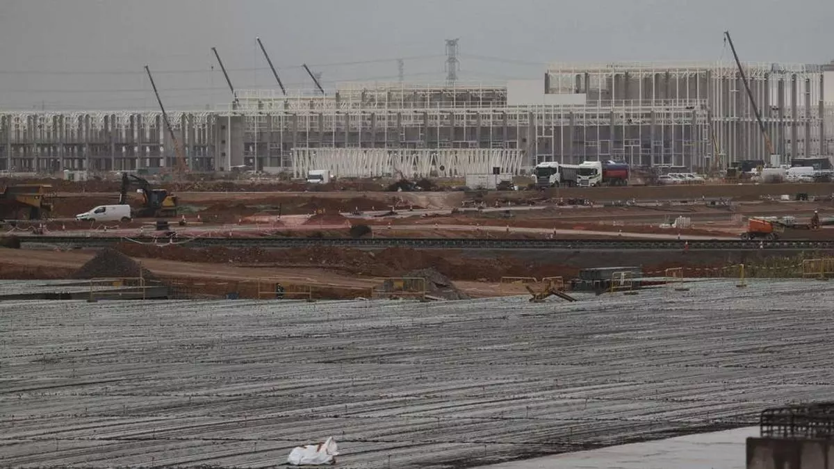 Avances de los trabajos de construcción del segundo edificio de la gigafactoría tras la finalización del primero. / Daniel Tortajada