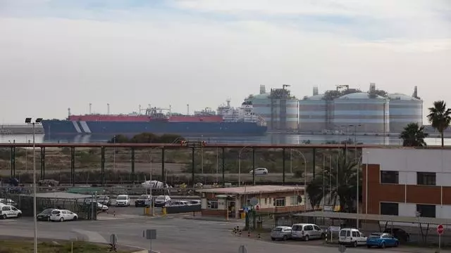 Un barco gasero junto a la regasificadora de Sagunt. / Daniel Tortajada