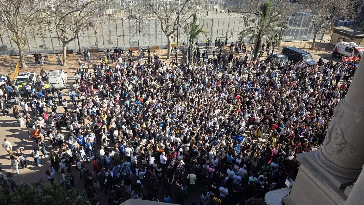 Una multitud colapsó durante media hora la plaza del Ayuntamiento a pesar de que el Bando de Fallas prohíbe las actuaciones callejeras