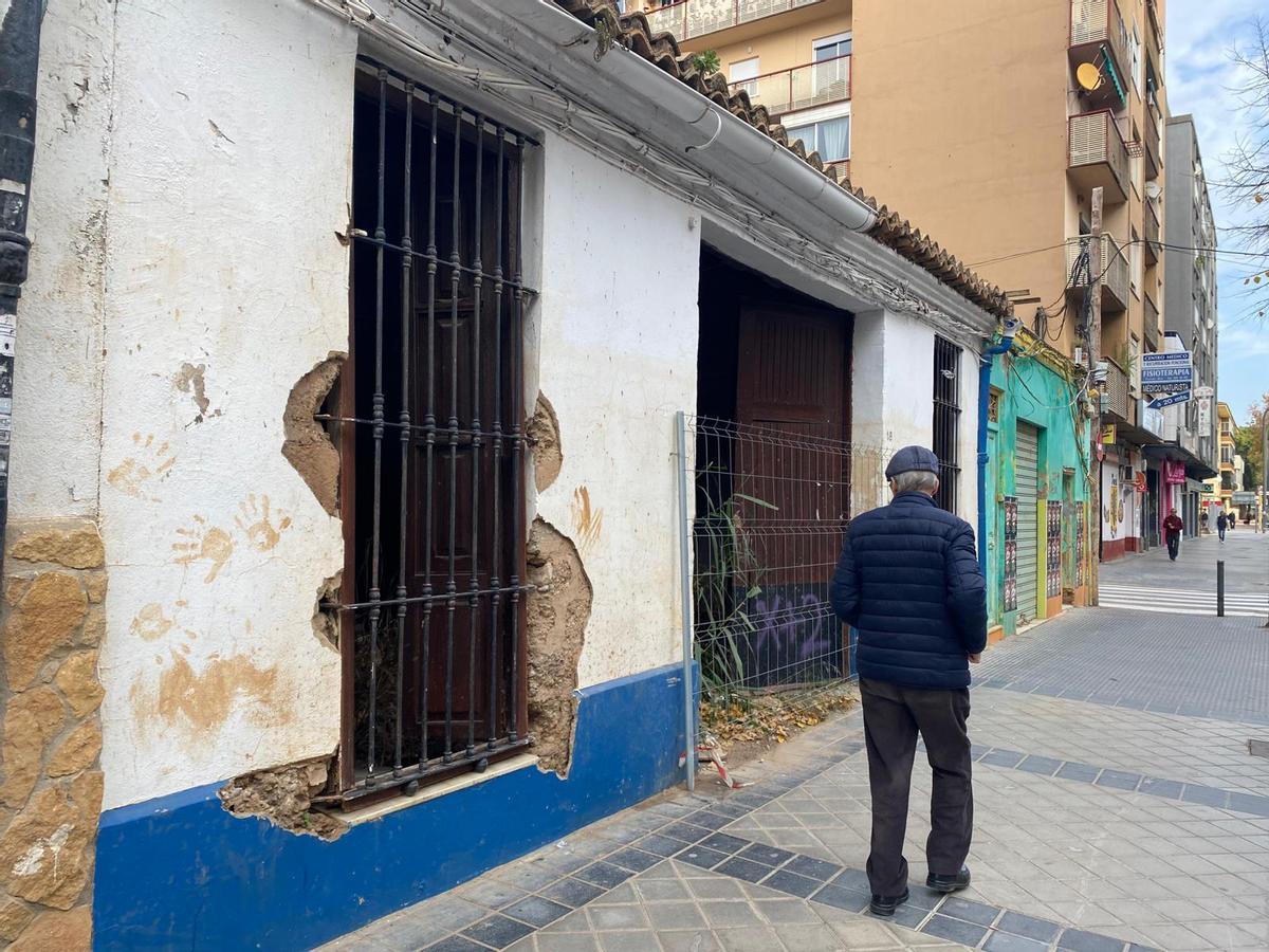 Plantas y acumulación de escombros en una casa abandonada en Massanassa