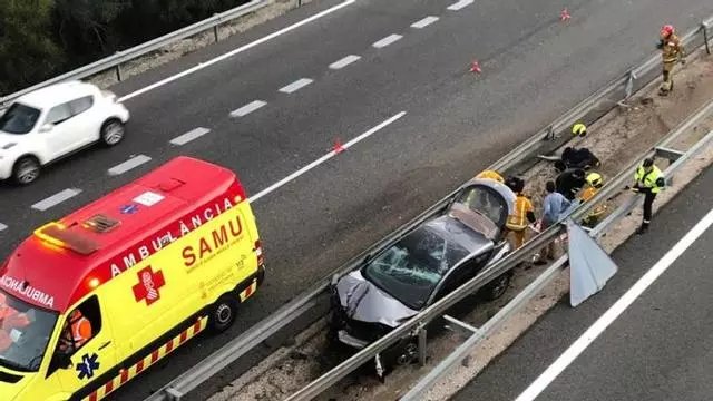 Los dos ocupantes de un coche que ha sufrido un espectacular accidente esta tarde, pasadas las 17 horas, en el tramo de Benissa de la AP-7 han quedado atrapados dentro del vehículo. El coche ha dado varias vueltas de campana y ha acabado en una posición inverosímil. Ha quedado totalmente aprisionado entre los guardarraíles de la mediana de la autopista. Los dos ocupantes no han sufrido en principio heridas de gravedad. Sin embargo, no podían salir de ninguna manera del automóvil. Las puertas estaban bloqueadas por los guardarraíles.