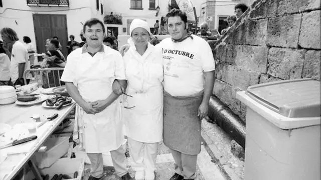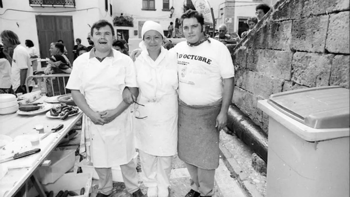 El carnicero de Xàbia "Pichi", Pepa Romans, de Casa Pepa, y Kristian Lutaud. Los tres cocinaron para toda Xàbia el 9 d'Octubre de 1992 / Fundació Cirne