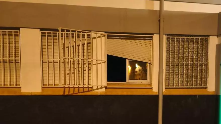 Fue una vecina del barrio de Wichita la que detectó que algo raro ocurría sobre las 20,30 horas de la Nochevieja, al ver forzada una de las ventanas que posee el colegio Tierno Galván y rota su persiana.