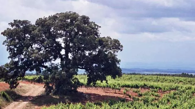 Encinas centenarias dominan el paisaje de viñedos de la finca El Renegado / Levante-EMV