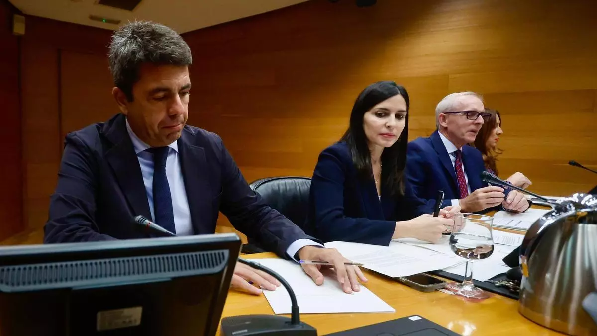 Mazón comparece en la comisión de investigación de la dana, este martes, en las Corts. / JM López
