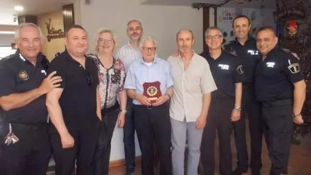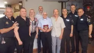 El veterano cronista gráfico y articulista, colaborador decano de Levante-EMV en la Ribera, Alfonso Rovira ha recibido un homenaje del cuerpo local de policía, cuyos mandos le hicieron entrega de una metopa «por su trayectoria y colaboración a lo largo de todos sus años de trabajo, con el colectivo municipal que vela por la seguridad de la ciudadanía». En la fotografía, junto a Alfonso, el Intendente, Jorge Iglesias, y miembros de la Policía Local.
