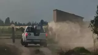 Un vehículo aplica un tratamiento en una partida rural del término de Cullera. / Joan Gimeno