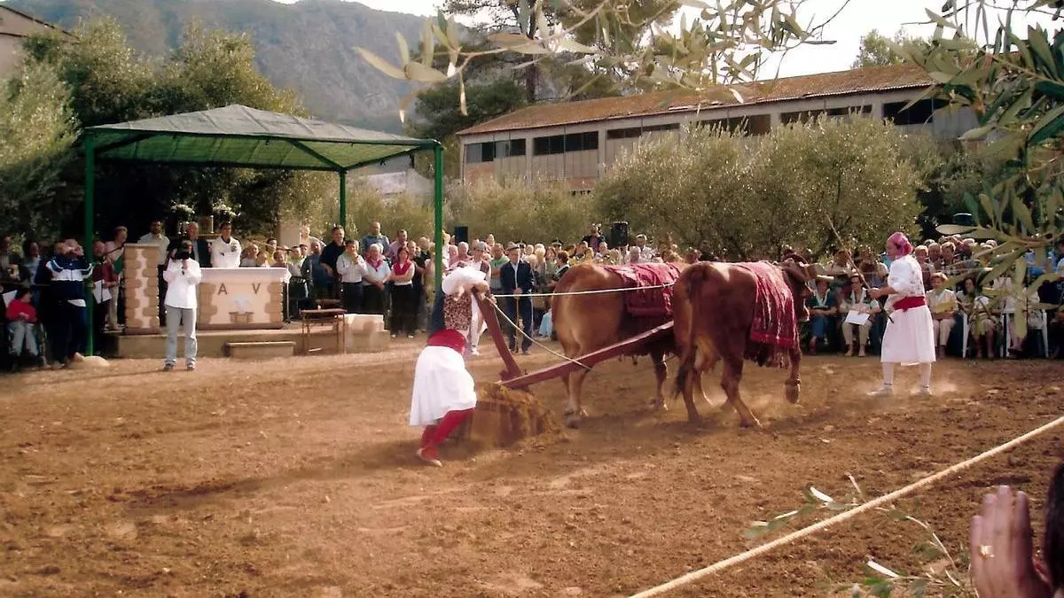 La escena representada rememora cómo dos bueyes se arrodillaron bajo un olivo, revelando entre la tierra la imagen de la Virgen. Desde entonces, su culto se consolidó en el convento de Aigües Vives, donde se le dedicó el altar mayor. Esta tradición forma parte del patrimonio religioso y cultural de Carcaixent, transmitida a lo largo de los siglos.