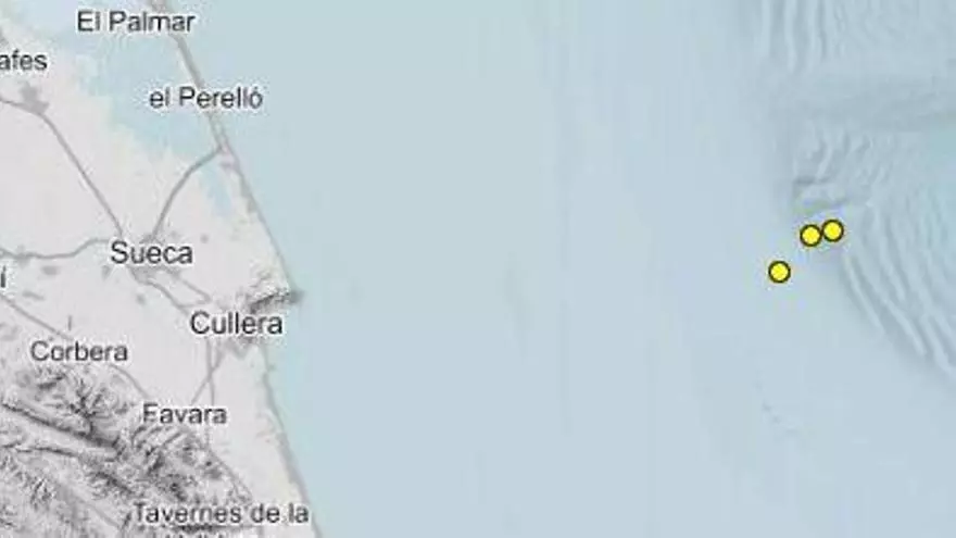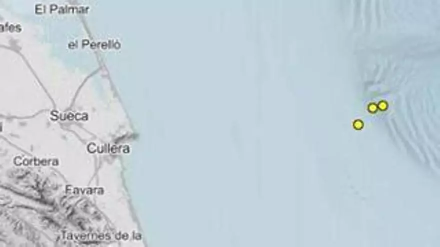 El litoral de Cullera ha registrado esta mañana tres pequeños seísmos en poco más de hora y media, según ha informado el Instituto Geográfico Nacional, que sitúa estos movimientos de forma genérica en el Golfo de València. Esta tarde se ha registrado un cuarto un poco más al norte, también en el Golfo de València. Esta serie de temblores, cuatro en un mismo día y en un área específica, se conoce como enjambre sísmico.