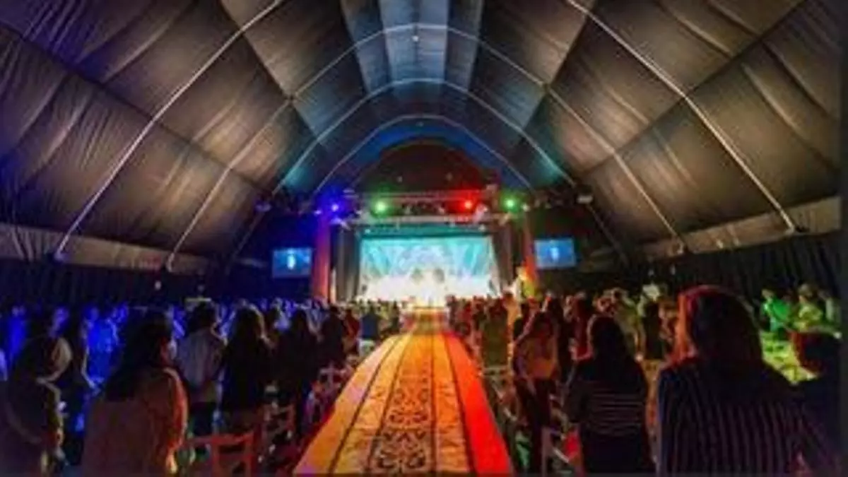 Perspectiva del nuevo espacio multiusos de Carcaixent durante la exaltación de las falleras mayores. / Carrillo