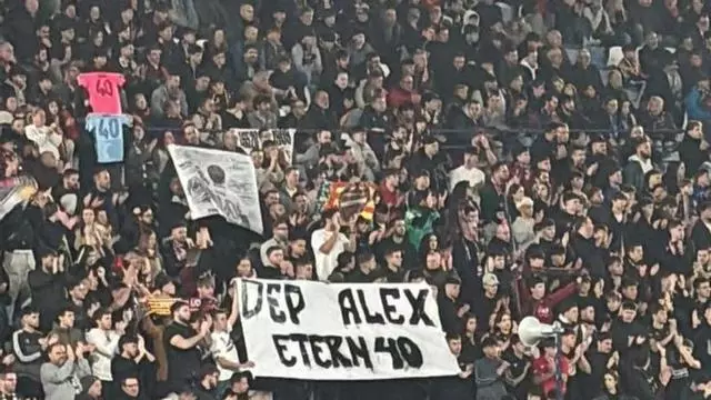 Un grupo de aficionados mostró una pancarta con el lema "Álex etern" y su número de dorsal