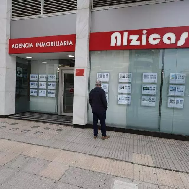 Un vecino observa el esparate de una inmobiliaria de Alzira en una imagen de archivo. / C. Llorca Ibáñez
