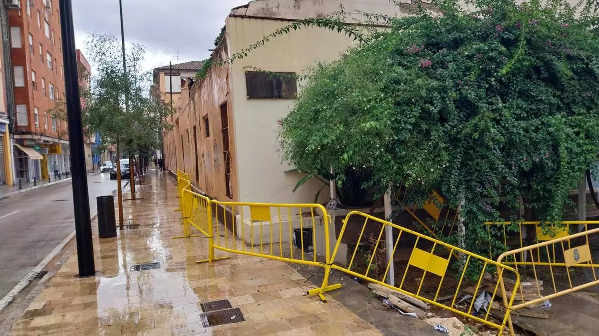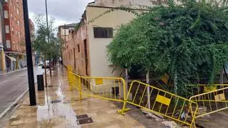 En Gandia las vallas están en la acera de la calle Alzira que recae sobre unas naves adosadas a la muralla del siglo XVI. La lluvia de septiembre de 2024 provocó desprendimientos e, inmediatamente, el ayuntamiento requirió al propietario para que actuara.