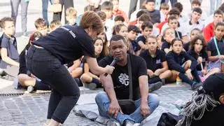 El acto empezó con una "batukada" a cargo de personal del CAI, con la participación del alumnado de los colegios Abecé y Calderón. Posteriormente, un usuario del CAI y un alumno del colegio Carmelites hicieron la lectura del manifiesto, acompañados de un ‘acting’ que ha representado la realidad de las personas sin hogar.