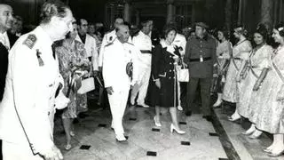 Corría el 12 de mayo de 1947, cuando Franco acompañó a la Virgen de los Desamparados «en su triunfal procesión por las calles valencianas, recibiendo el homenaje de universitarios y huertanos». La fallera mayor de Valencia en aquel momento, Amparito García, fue la encargada de colocarle el distintivo, creado de manera excepcional para «este caso histórico en nuestra fiesta», según el acta de concesión. «No era un bunyol», aclaran desde JCF, pues este tipo de reconocimiento, tal como existe en la actualidad, se creó con posterioridad. «En la estancia de Su Excelencia en la capital levantina», como rezaban los periódicos al día siguiente, además del reconocimiento fallero, visitó la factoría naval de Manises y el aeródromo, recibió «incesantes aclamaciones en los pueblos de la Albufera» y se le regaló «una plantación de arroz».