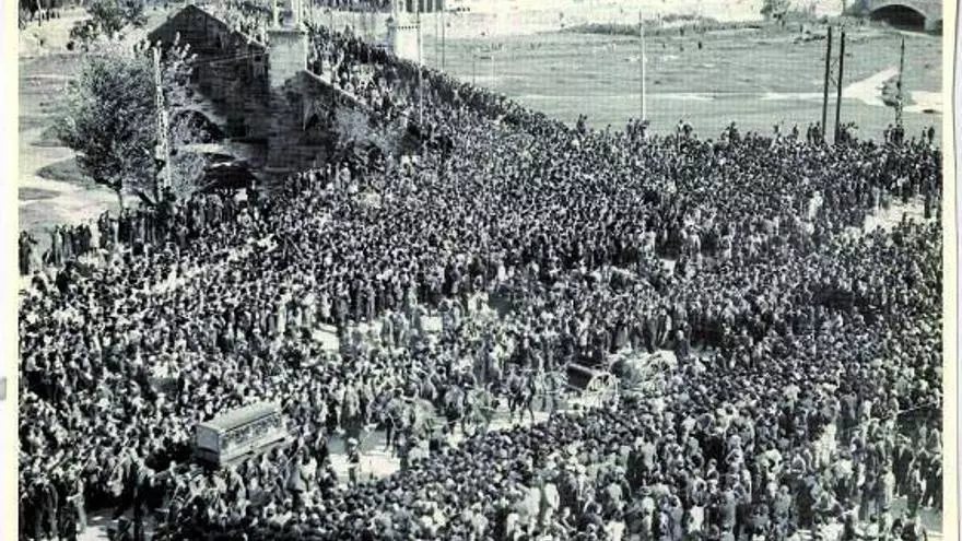A las diez treinta el féretro descendía lentamente entre los aplausos de la gente, los estampidos de las salvas de ordenanza, los acordes del Himno de Riego, el rugido de los motores de una escuadra de aviones y el aleteo de miles de palomas puestas en libertad. Una vez en tierra, veinte marineros de la Unión de Pescadores del Grau se hicieron cargo del féretro, iniciándose la comitiva que lo conduciría hasta la Lonja, donde el féretro con sus restos estaría expuesto al público hasta el cinco de noviembre.