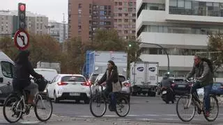 Vehículos y ciclistas en una calle de València / JM Lopez